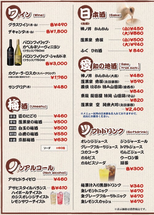 地酒・焼酎などメニューに載っていないお酒も豊富に取り揃えております